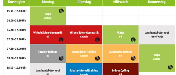 Den aktuellen Kursplan, gültig ab 4.10.2021, können Sie sich hier herunterladen: Download Kursplan (PDF)